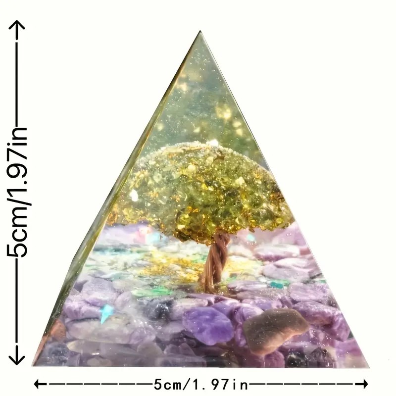 Handcrafted Orgonite Tree of Life Pyramid with Green Olive & Amethyst Gemstones – Ideal for Home and Office Decor, Perfect Gift for Birthdays, Christmas, and Special Occasions